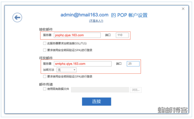 4. 設(shè)置成功后,將會(huì)看到郵件客戶端下方顯示的“POP3 服務(wù)器”和“SMTP 服務(wù)器”信息。